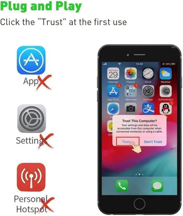 Plug and Play: No Need Install Any Driver/App & Personal Hot spot or WIFI No Need to adjust the Mirror of iPhone/iPad just insert each interface to corresponding device click the Trust button when connecting and then wait a few seconds to connect automatically easy and quick to install saving your much time.