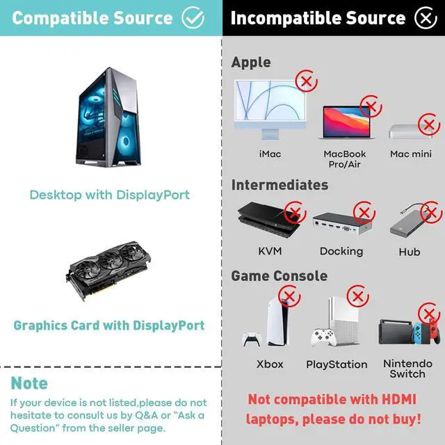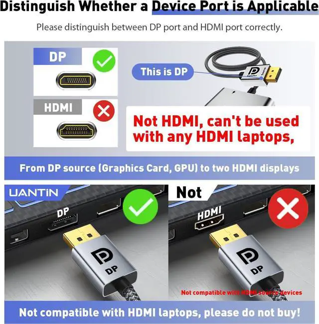 *Note: Integrated GPU computers can only support mirroring mode or can only extend one monitorReinforced Material - Anti-interferenceDisplayPort to HDMI Adapter uses a smart chip that takes it to an unprecedented level. The plug adopts non-locking design which can avoid damaging your device when pulling out the graphics card. The cable is made of 28AWG copper core cable with multi-layer shielding to ensure stable signal transmission without worrying about splash screen ghosting and audio/video synchronization. One-piece aluminum alloy + 24K gold-plated plugs for longer life. Usage notes?? 1. If you need to extend multiple displays make sure your graphics card supports at least 18Gbps bandwidth otherwise you may experience screen flickering and be unable to display multiple screens simultaneously. 2. When using be sure to plug in the power cord included in the package and provide the product with at least 5V/1A of current.
