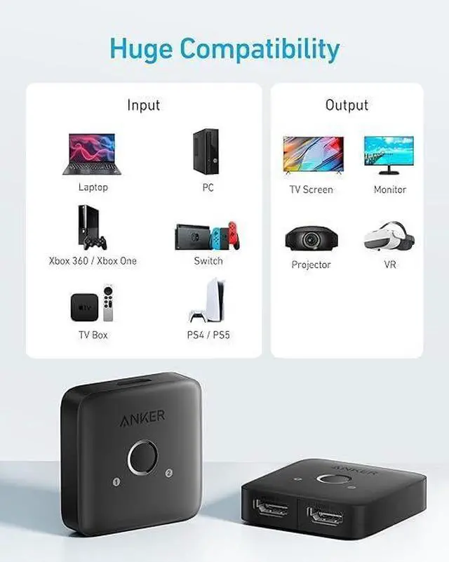 Huge Compatibility: Seamlessly compatible with a wide range of devices this HDMI switch integrates everything from laptops and game consoles to TV screens and VR headsets.