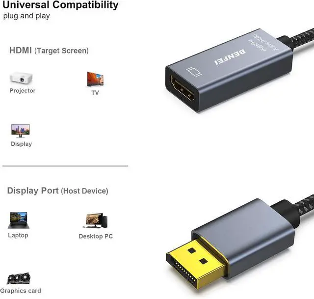EXCELLENT TRANSMISSION: Benfei DisplayPort to HDMI 4k@60Hz Adapter utilizes better chip solution and professional multiple shielding for instaneous and accurate data streaming.