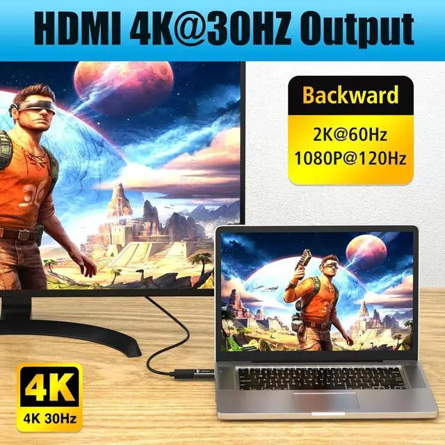 ? [4K@30HZ High Resolution] This DisplayPort to HDMI adapter supports up to 4K@30HZ HDMI output. (Backward supports 2K@60Hz 1080P@120Hz). Supports DTS-HD Master Audio and Dolby TrueHD formats supports digital 7.1 5.1 and stereo. Connect the DisplayPort male to a DP source device then connect the HDMI female to display device by HDMI cable.