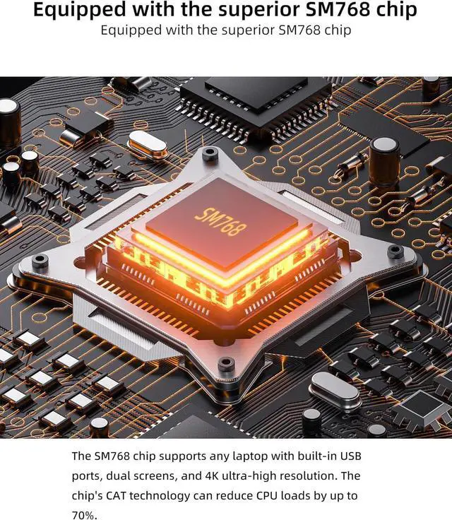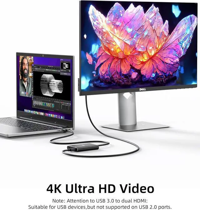 Premium SM768 Chip: This USB 3.0 to Dual HDMI adapter uses the SiliconMotion SM768 chip which supports PCs/laptops with USB 3.0 ports. By connecting to a USB port that cannot output video it allows the addition of two extra screens with a maximum resolution of 4K for a single screen.