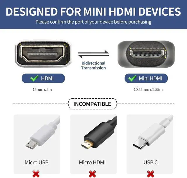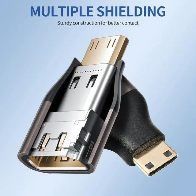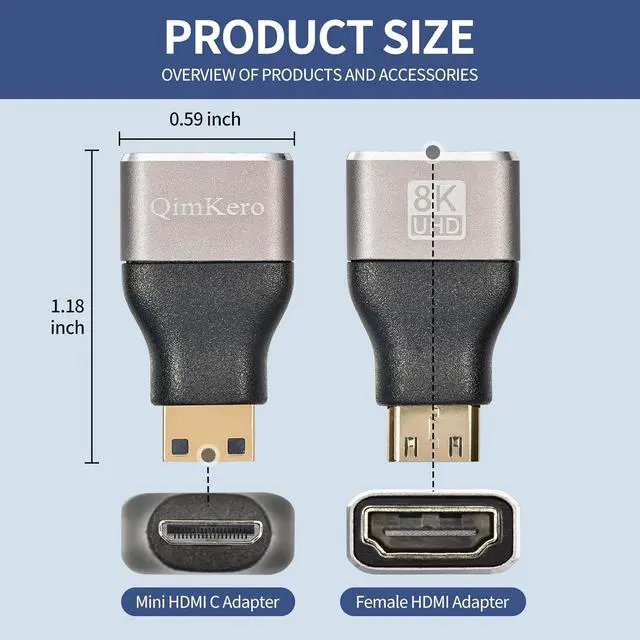 Support 8K HD Video8K 2.1 Mini HDMI Male to HDMI Female Connector support full 8K resolutions 7680x4320@60Hz 4K@144Hz 2K@240Hz 1080P@240Hz. Mini hdmi male to hdmi female adapterplug and play no need to drive small and light portable it will be a good choice for your travel office home theater
