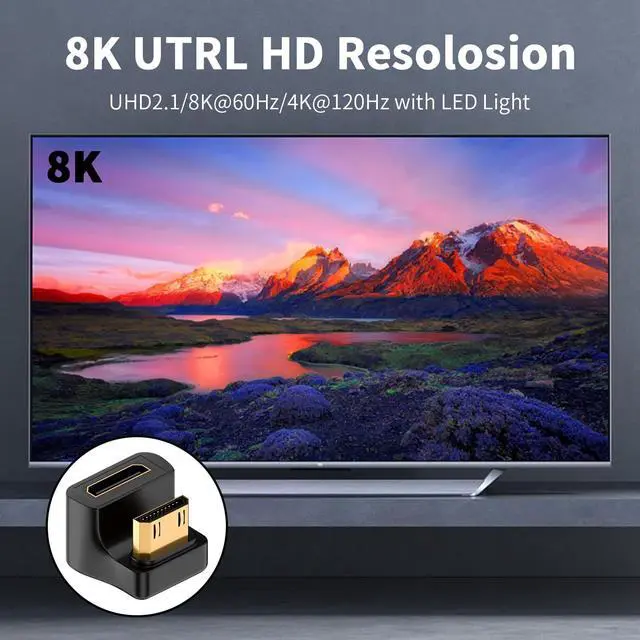 Perfect U-shaped design: 8K U-shaped mini HDMI adapter with a distance of 0.19 in/ 4.9 mm between the U-shaped parts. The U-shaped design can effectively hide the cable behind your device and avoid affecting the appearance and creating a messy look.