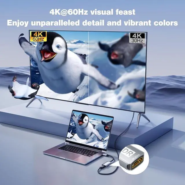 4K Ultra HD Visual FeastThis USB-C to HDMI adapter supports resolutions up to 4K@60Hz while being backward compatible with 1440P@60Hz and 1080P@120Hz. Seamlessly transmits 3840x2160 resolution for crystal-clear visuals and smooth video playback. Ideal for HD monitors TVs and projectors meeting diverse device and usage requirements.
