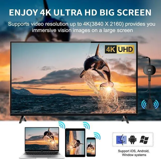 WIRELESS 4K CASTING IN SECONDSSOCLLLife Wireless HDMI Display Adapter wirelessly mirror 4K video and audio from small screen (i-Phone i-Pad MacBook Android phones tablet laptop) to larger displays (TV/monitor/projector). You can experience crystal-clear low-latency casting on a big screenno more cable clutter. PLUG & PLAY SETUPSet up your wireless screen sharing in 3 simple stepsjust plug the HDMI dongle into your TV power it and connect via your devices screen mirroring function. No apps or drivers required the seamless HD video and audio will display on your TV in minutes.