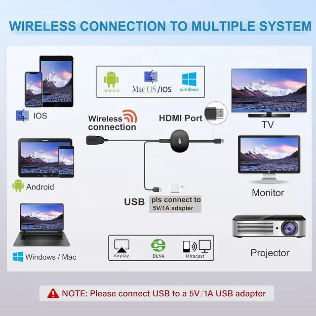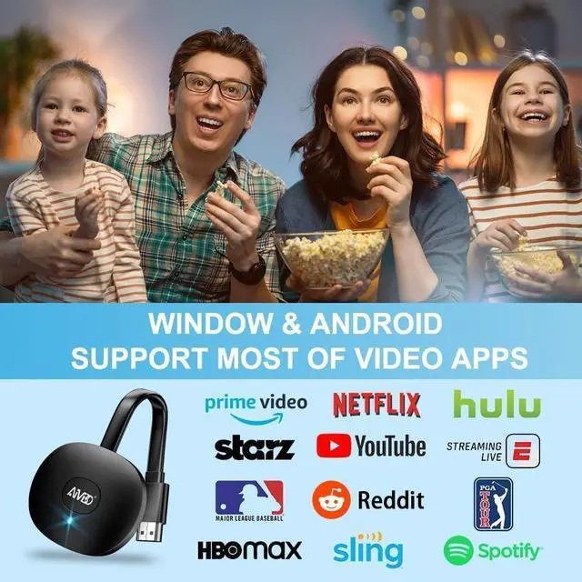 (Note: iOS users need extra steps to connect to the dongle's wireless signal)POPULAR APP CASTING FROM ANDROID & WINDOWSInstant cast all your favorite app content from Android or Windows devices to your TV like Netfix Prime Video HULU HBO Max Sky Go and more. Switch from small screen to larger one and enjoy high-definition series movies live sports and shows with friends and family. HDCP LIMITATION FOR IOS MIRRORINGOur Wireless HDMI Dongle supports casting your iPhone (included iPhone17) iPad or MacBook to a larger screen for web browsing watching movies presentations and more. It works with YouTube Instagram TikTok and other non-HDCP copyright-protected apps.