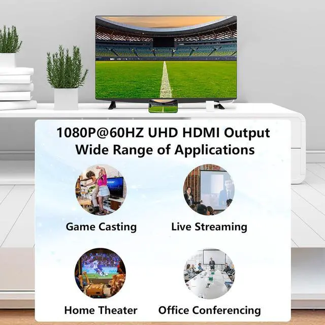 The Lightning to HDMI Adapter Cable supports mirroring of what is displayed on your device screen - including apps presentations websites slideshows and more - to your HDMI-equipped TV display projector or other compatible display in up to 1080P HD. This iPhone Lightning to HDMI connector supports mirror videos from Apps such as YouTube Quickflix Hulu Plus IDMB Family On TV ABC NBC FOX Office and more videos downloaded and saved on your iOS Devices for stream.