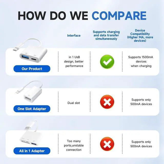 264 MPEG-4) formatsMulti-Device Productivity HubUntvie usb to lightning adapter Transform your device into a powerful workstation. This USB OTG Adapter allows seamless connection of keyboards mice gamepads USB drives SD card readers and even MIDI instruments. Perfect for office tasks gaming and content creation its the ultimate tool to maximize your efficiencyWith Charging PortUntvie usb adapter adds a charging port charging view photos or videos can be operated at the same time. Say goodbye to worries about potential power failuresUltra-Portable? Designed for life on the move this incredibly compact and lightweight lightning to usb adapter for iphone turns any space into a mobile workstation.