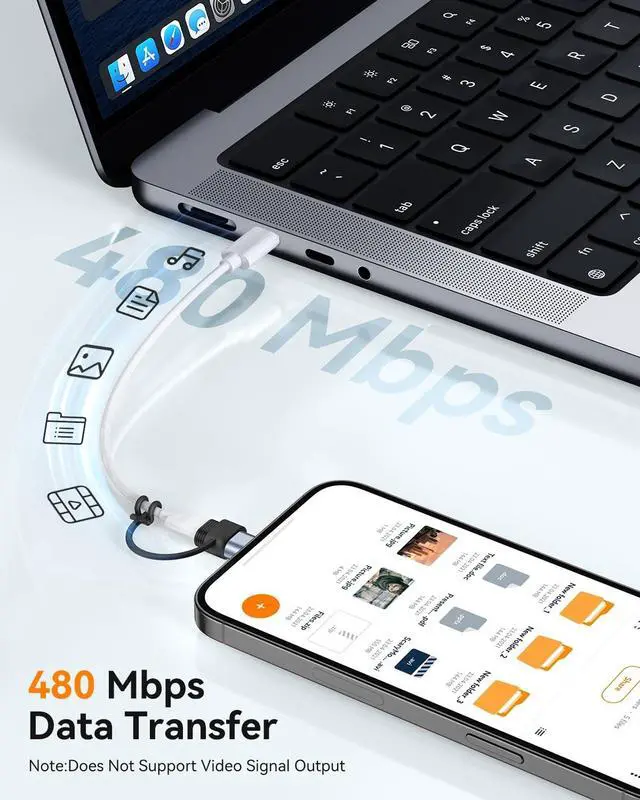Pay Attention Before Purchased: Please Note the adapter can be only used for Charging and Data Transfer between Phone and Laptop.? Not support OTG video and audio function? Lightning headphones? Not for A-pple Pencil? Flash drive? SD card reader square reader printer? Microphone Camera Mouse MIDI keyboard Hubs HDMI Converter etcSupport Charging and
