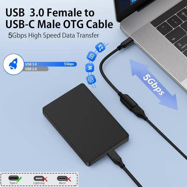 SUPER SPEED DATA TRANSFER: USB C OTG Cable support 5Gbps ultra fast data transfer speed 10X faster than USB 2.0 usb a to c otg adapter ensures quick file transfers HD video streaming and efficient backups with this USB C to USB Adapter android otg cableUSB C to USB 3.0 ADAPTER ANDROID OTG CABLE works effortlessly with Galaxy S25 Edge S25 Ultra S25 Plus S24 S23 S22 S21 S20 Z Flip 7 6 5 Z Fold 7 6 5 A17 A56 A36 A26 A16 A55 A35 A25 A15 A54 A14 A53 A23 A13 iPhone 17 Pro Max 17 Pro 17 Air 16e 16 Pro Max 16 Pro 16 Plus 16 15 Pro Max 15 Pro 15 Plus 15 MacBook Pro MacBook Air iPad Pro Google Pixel 10 Pro Fold 10 Pro XL 10 9 Pro XL USB C to USB A converters USB C to USB C adapters and OTG-enabled accessories for unmatched versatilitySIDE BY SIDE USB PLUG & PLAY: You can plug two usb c otg cables android otg adapter for in your Macbook pro or laptop side-by-side ports at the same time and the otg cable usb c male to usb female adapter won't block adjacent USB C port. No driver or software needed for the usb c otg adapter just simply plug in and playLIGHTWEIGHT