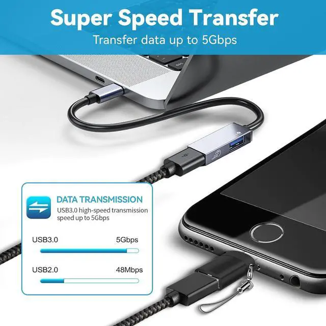 Transfer: Supporting USB 3.0 protocol it provides high-speed data transfer and charging. Simply insert the USB C plug into the corresponding port of your device to connect flash drives or other standard USB A devices allowing for data synchronization or phone charging.