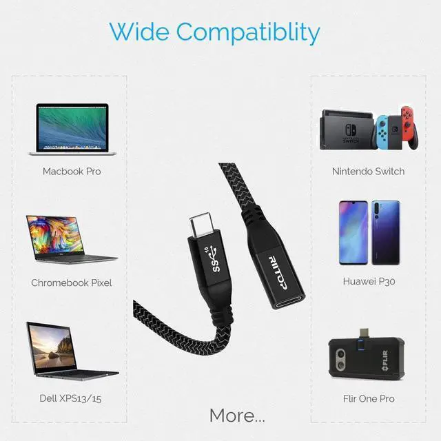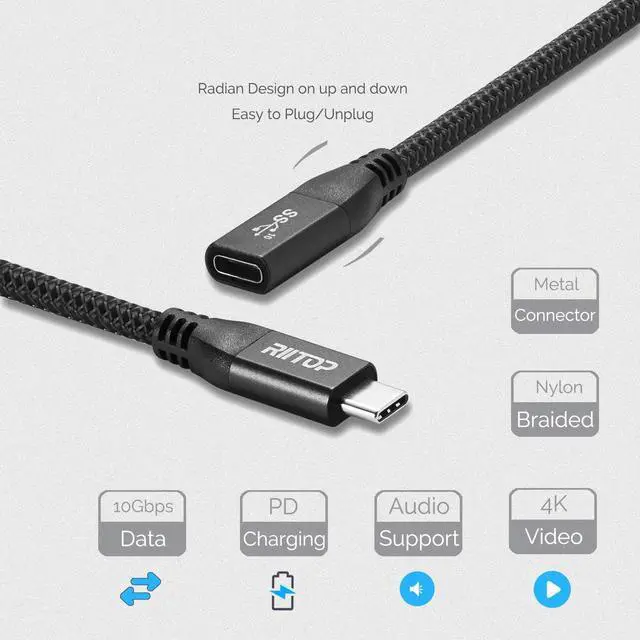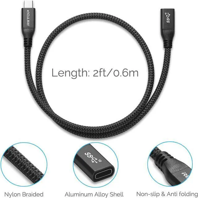 ?? RIITOP Short USB-C Extension Cable is designed for extending and protecting USB C Port on USB-C devices such as Nintendo Switch Type-C Smartphone or Laptop. Supports Data/Video/Audio Transfering and Charging?? [Update Version] RIITOP Short USB C Extension Cable v 2.0 is USB 3.1 Gen2 10Gbps Speed Nylon Braided Cord with Aluminium-alloy Connector ensures it's Durability and Reliability?? [Multi-Functions] This Short USB Type C Extender will protect C-Type Port of Devices from demage because of frequently inserting in and pulling out. It can transfer Data up to 10Gbps 4K HDMI Video Signal Audio and also support Charging?? [Compatibility] USB C Extension Cable is Compatible with Thunderbolt 3 and most