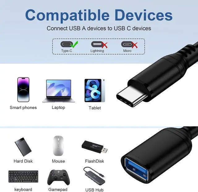 Universal Compatibility: The usb to usb c adapter cable compatible with all USB Type-C port devices including for Macbook Pro 2020/2019/2018/2017/2016 for Macbook Air /for iPad Pro 2020/2018 iPhone 17 Pro Max 17 Pro 17 iPhone Air iPhone 16e iPhone 16 Pro Max 16 Plus 16 Pro 16 iPhone 15 Pro Max 15 Plus 15 Pro 15; Galaxy A17 S25 S24 S23 S22 series iPad Pro 13 11 2024 iPad Air 13 2025 iPad Air 11 2025 iPad Pro 12.9 inch USB C port HP and any USB-C device.