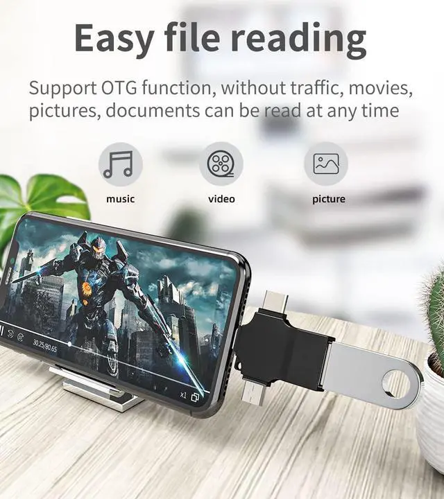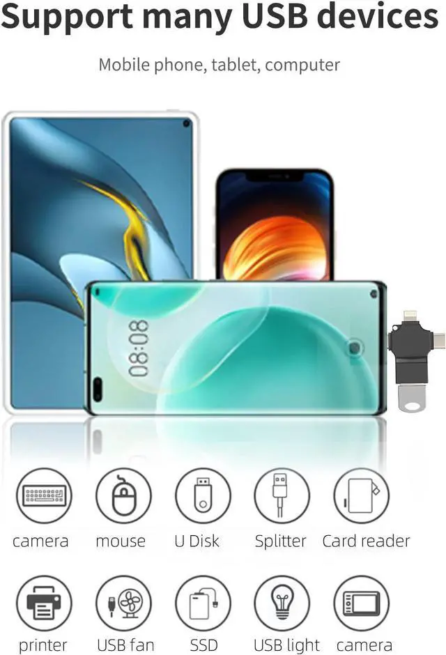 3 in 1Multifunctional DesignOTG adapter has multiple interfaces usb c (type c) /micro usb/lightning iOS device interface and usb otg interface suitable for iPhone/iPad/lightning interface and micro usb interface and usb c interface device s. We believe it will make your work more efficient and convenient. Real-time sharing and data managementHigh-speed transmission suitable for data transmission between iPhone/Android and U disk mouse keyboard card reader etc. providing intelligent file viewing and management functions browsing documents pictures watching videos etc. Strong and Stylishconstructed from premium scratch-resistant aluminum Engineered for enhanced durabilitythe adaptor not only blends seamlessly with your MacBook Pro but also withstands the wear and tear of day-to-day use.