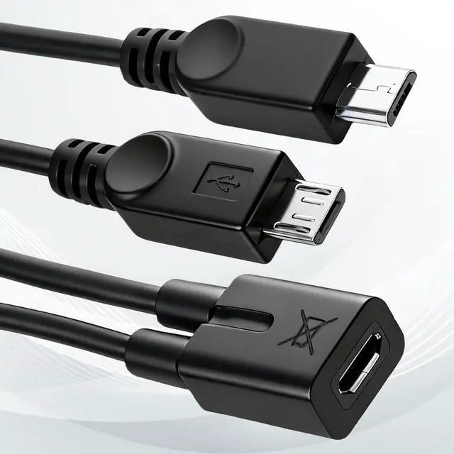 OTG and charging cables: Each cable includes a long cable (data + charging) and a short cable (charging only). Connects two Micro-B devices at the same time making it ideal for travel home or office useDual-head design: One end is a USB Micro-B female connector and the other end is a dual USB Micro-B male connector. The USB Micro-B cable can be connected to an available USB port using an optional cableWarm Tips - This micro usb adapter long cable supports data and charging; the short cable only supports charging. This helps avoid confusion and ensures correct useCompatibility: The otg cables replacement is suitable S2 S3 S4 S5 Note series and other Micro-B devices. Ideal for older phones projectors GPS devices and older tablets that need dual chargingPractical function: This micro usb splitter can transfer photos videos documents and other data between devices and external storage connect USB devices (such as flash drives mini keyboards) to your OTG data cable device