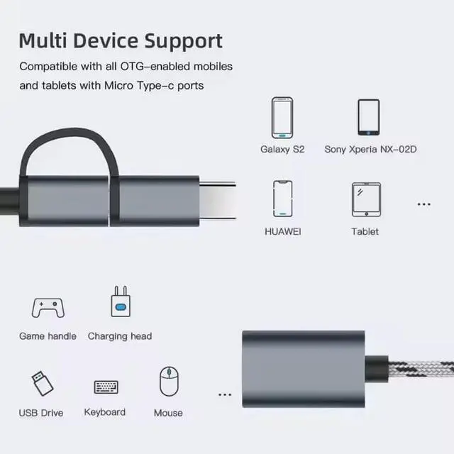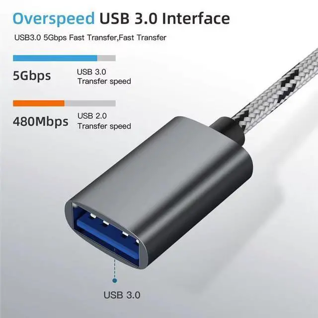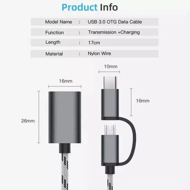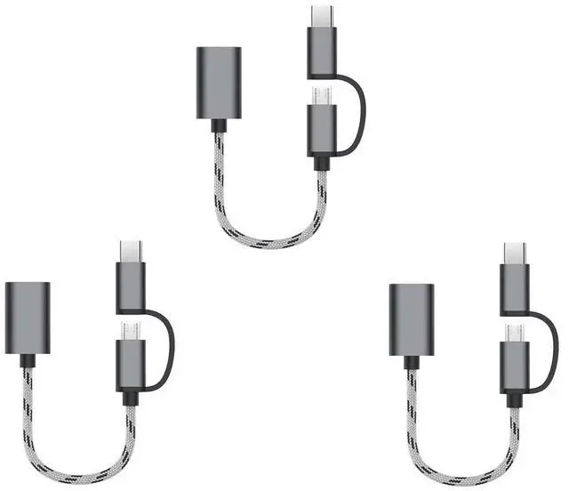 • High Speed USB3.0-A Type C Micro Cable Adapter USB OTG Data Cable (Grey- 3pcs)