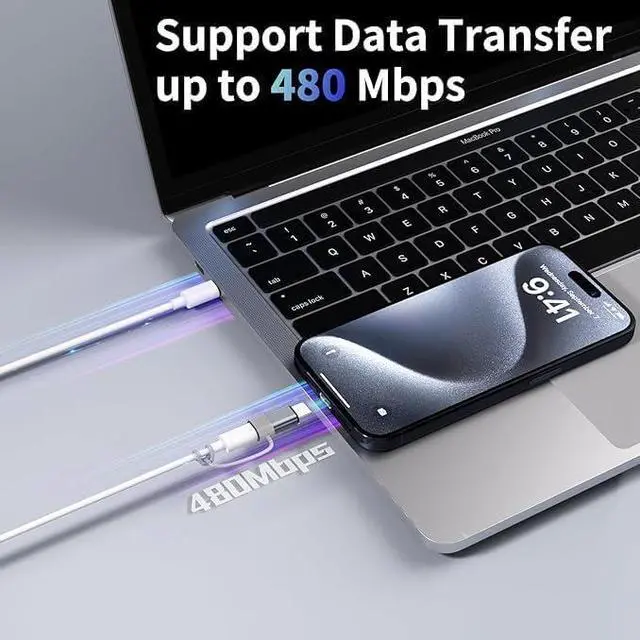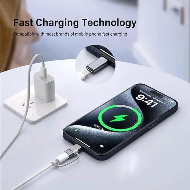 MFi Certified & Safe Fast Charging Adapter This Lightning to USB C converter is officially MFi certified guaranteeing 100% compatibility and safe high-speed charging for your iPhone 15 16 17 Pro Pro Max and all Lightning port devices. Its intelligent chip prevents overheating offering you complete peace of mind. Perfect as essential iPhone 15 16 17 accessories. High-Speed Sync & Plug-and-Play Converter Achieve data transfer speeds up to 480Mbpsideal for quickly syncing large photos and videos between your iPhone and laptop. This USB C to Lightning adapter requires no software; simply plug in your existing Lightning cable for instant charging and data transfer.