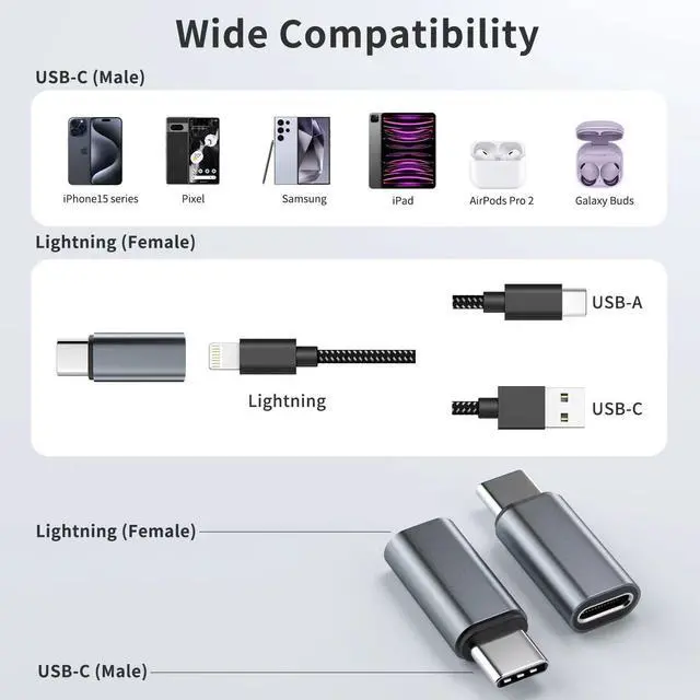 Universal Compatibility: iPhone 15 Through 17 Series Designed as the essential adapter for iPhone 15 16 17 it works seamlessly with iPhone 15 Pro Max 16 Plus 17 Air and older models. Also functions as a basic USB-C to Lightning adapter for connecting Lightning cables to newer MacBooks iPad Pros or USB-C chargers.