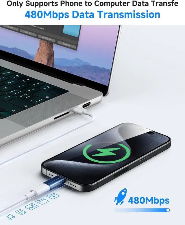 Fast Charging & Data Sync MFi-CertifiedGet back to full power fast. This USB C to Lightning adapter delivers up to 27W of charging speed and 480 Mbps data transfer. MFi-Certified for guaranteed compatibility and safety with iPhone 14 13 12 11/11 Pro/11 Pro Max Xs/Xs Max/Xr X/8/8 Plus iPhone Se/New Se/7/7 Plus/6/6 Plus/6s/6s Plus/5/5c/5s iPad Pro iPad Air and iPad Mini. Its the reliable Lightning to USB C adapter you need for efficient charging and seamless computer syncCompact Size & Anti-Loss Design (Never