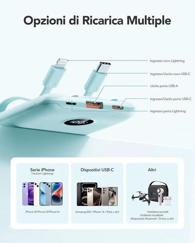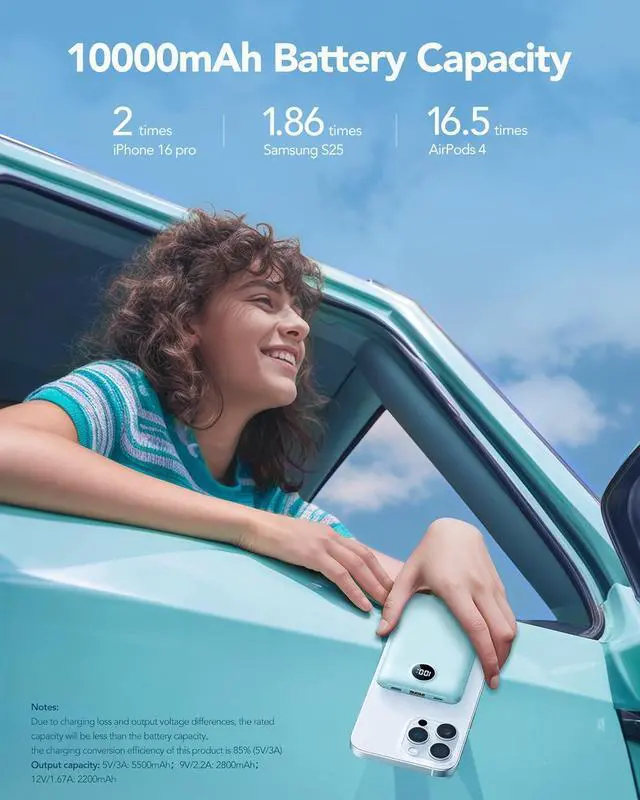 (*Based on lab tests with iPhone 16 at 0% battery. )[Dual Reharging Modes & Smart LED Display]Recharge via built-in USB-C cable (0-100% in 3 hrs) or USB C and Lightning input port. Real-time LED indicators show exact battery status[Absolute Safety] 9-layer safety system with FCC + CE + RoHS certified temperature/voltage/current control. It guards against issues such as overcurrent overvoltage protection overheating and overcharging. Safety is always our top priority