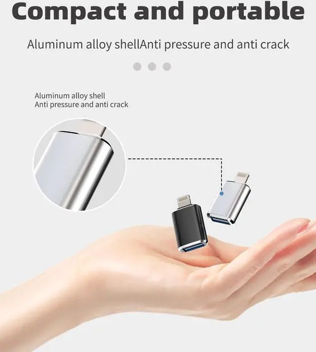 Slim and small volume easy for you to take it everywhere. Plug and Play make your life more convenient. High AdaptabilityThis for iPhone USB adapter compatible with iPhone 14/14 Pro/14 Pro Max/14 Plus/13/13 Pro/13 Pro Max/13 Mini/12/12 Pro/12 Pro Max/12 Mini/for iPhone 12/for iPhone 11 Pro/for iPhone SE (2nd generation) /11 Pro Max/Xs/Xs Max/X/8/8 Plus/7/7Plus/6/6 Plus/SE and for iPad Air/Mini/Pro Support iOS13 or 13 Above version. Service and WarrantyYou will get this 2 Pack for iPhone otg adapter. A 60-days money-back guarantee and 1-year Warranty for every our customers to make sure you would be happy about your purchasing from us.