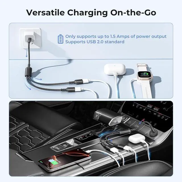 (The Catch) No product is perfect neither is this one. The rated voltage and current is 5V and 2A for this adapter meaning each sub-cable of this adapter gets 1A when they are used at the same time. For more info refer to the detailed description down below. (Less Constraint More Freedom) Need more USB-A ports because all the new gadgets are coming without them? This USB-C to Double USB-A Adapter could just be your life-saver. Now you can use your USB-A heritage accessories with the help of this splitter even on devices with only one single USB-C port.