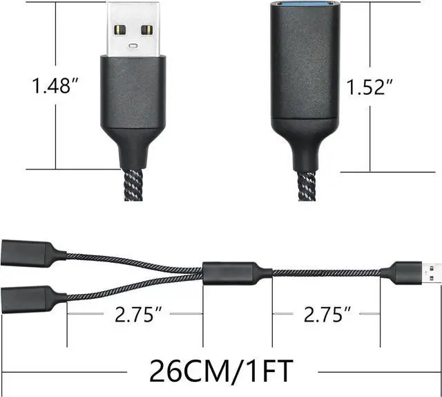 (Note: The product has OTG function some devices can not recognize the OTG function please manually open. )Durable MateriaUSB A Female Y splitter adapter use of high quality aluminum alloy it is wear resistant and has fast heat dissipation nylon braided cable soft durability and tangle free extend the service life. Wide CompatibilityUSB A Male to dual USB A Female Y splitter cable It can expand your USB A ports widely for Mouse Keyboard Printer Gaming consoles Cellphone and other USB peripherals.