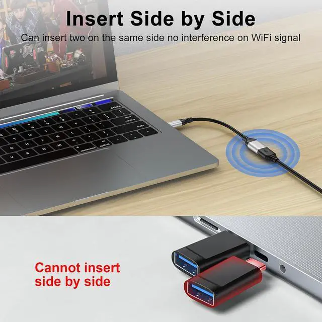USB C OTG AdapterThis usb c to usb adapter converts the USB A into USB C to connect flash drives it supports connecting USB peripherals such as USB Flash Drive U Disk USB Hubs USB Microphone USB Camera USB card readers Keyboard Mouse Speaker etc. The type c usb adapter makes your life more convenient and more interesting. USB 3.0 Super Speed TransferFull USB 3.0 super speed data transfer up to 5Gbps 10x faster than USB 2.0 the OTG dongle usb-c to usb adapter can transfer files HD movies and songs to USB C devices in seconds ensuring the fast and stable transmission of high-definition digital audio and video signals.