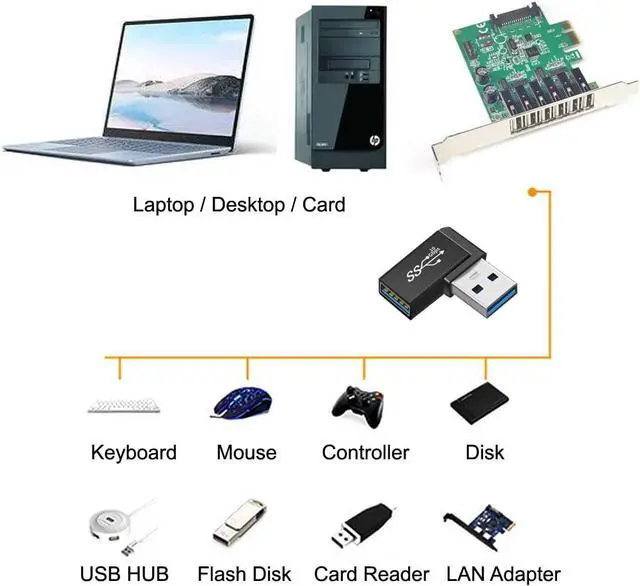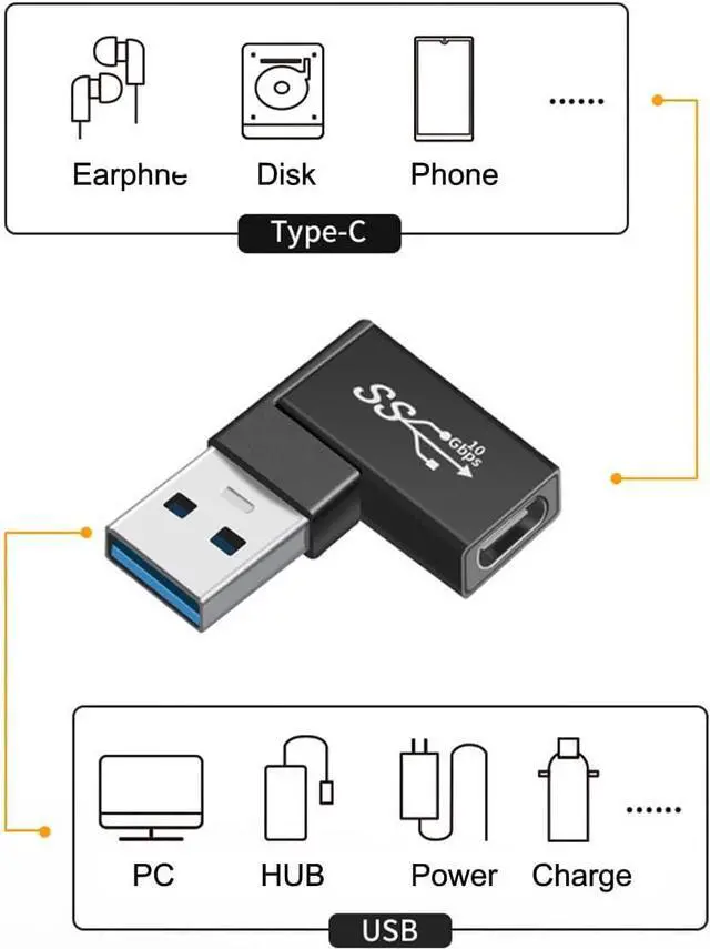 The package included 3pcs adapters: 1. USB-C Male to USB-A Female 3. USB-C Female to USB-A Male 4. USB-A Male to USB-A Female