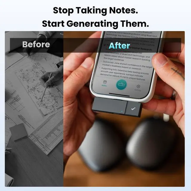 Your Invisible, Workflow-Integrated Assistant - HiDock P1 mini redefines portable recording. By harnessing the earbuds you already wear, it eliminates the awkwardness of a traditional recorder. Whether youre a professional in client negotiations, a student in lectures, a journalist in interviews, or a creative in brainstorming sessions, HiDock captures every word without interrupting the flow of dialogue.