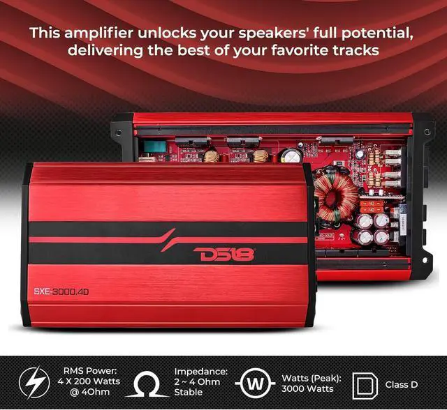 HIGH PERFORMANCE - DS18s SXE series of amps was designed for users looking for an extreme increase to the quality of music reproduced by their vehicle. The SXE-1200.4 guarantees your sound systems speakers perform at their peaks on every use