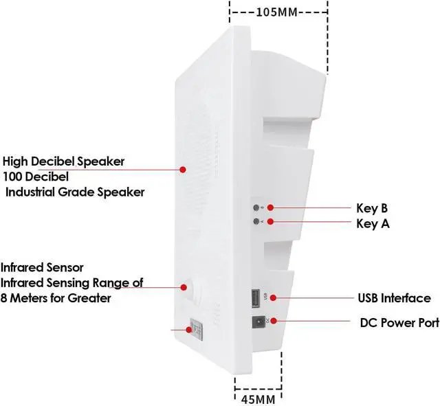 Infrared PIR Motion Sensor Activation: This motion activated voice player utilizes advanced PIR infrared detection technology to automatically trigger pre-recorded announcements when people pass within its 0-8 meter sensing range. Perfect for shop entry greetings, garage door alerts, or security reminders in public spaces without requiring manual operation.