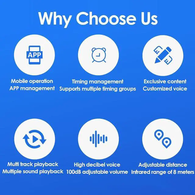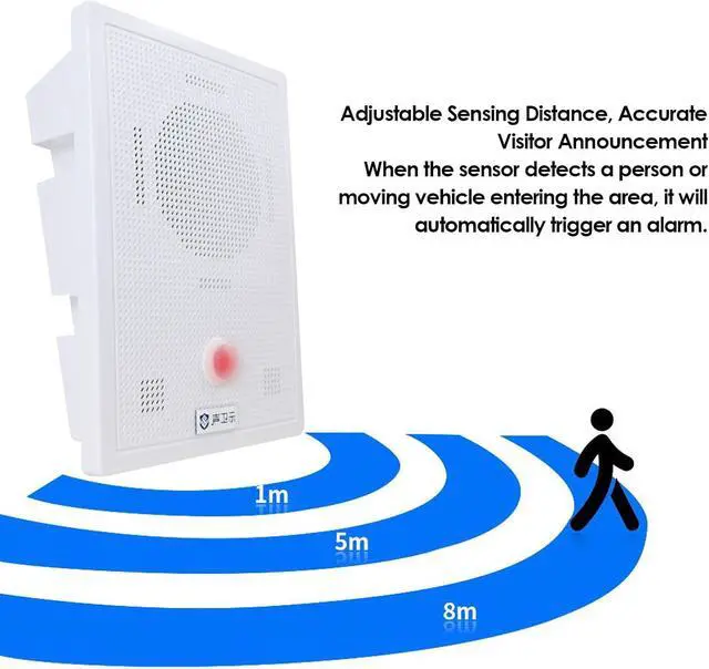 APP Wireless Control & Customization: The Bluetooth-enabled sound speaker allows convenient wireless control via dedicated mobile app (10m range). Adjust volume, select MP3 sound files, set playback schedules, and modify sensing distance remotelygiving you complete flexibility to customize announcements for different environments and occasions.