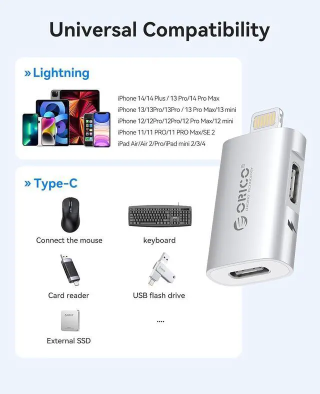 Supper Compatibility: Widely use for iPhone 14/14 Pro/14 Pro Max/14 Plus/13/13 Pro/13 Pro Max/13 Mini/12/12 Pro/12 Pro Max for iPad Air /Mini /Pro/2020 (OTG Function support IOS 13 Later for iPhone & IOS 13 or Later for iPad.