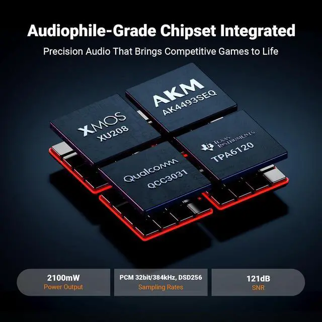 Audiophile-Grade Chipset: Equipped with the AK4493S DAC, XMOS XU208 USB processor, and TPA6120 headphone amps, the K7 supports high-resolution decoding up to PCM 384kHz/32bit and DSD256. With up to 2100mW output power, it easily drives demanding headphones