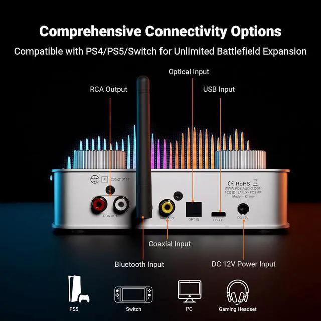 Comprehensive Connectivity: Supports USB-C, coaxial, optical, Bluetooth aptX HD/LL and 3.5mm microphone input. Outputs include 4.4mm balanced, 3.5mm single-ended, and RCAeasily connecting to headphones, powered speakers, or amplifiers for desktop setups