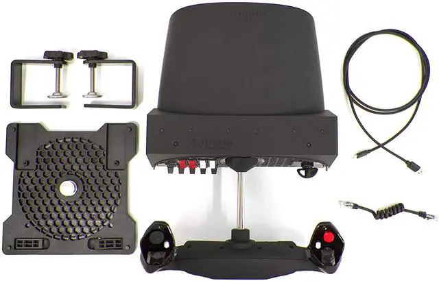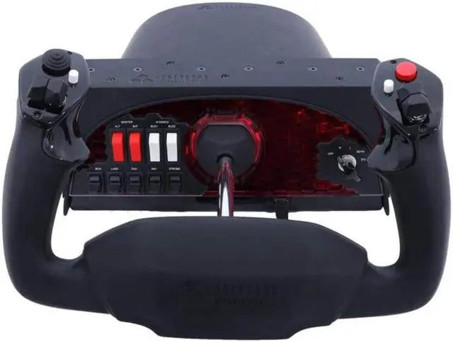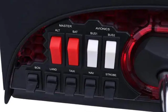 Alpha Flight Controls Yoke and Switch Panel - Mounting Plate with 3M Micro-Suction Pad - 2x Clamp - USB-C Cable - Yoke Connector Cable - Rubber Screw Caps - Manual - Honeycomb 5 Year Limited Warranty Two Vertical 2-Way Switches, 8-Way Hat Switch, Two buttons Master, Avionics, Light Switches Solid Steel Shaft wtih Dual Linear Ball Bearing & 180 Degree Yoke Rotation Adjustable Ctockpit Backlighting Right handle features two Horizontal 2-Way rocker switches Left handle features one 8-way hat switch Solid steel yoke shaft 180-degree Yoke rotation 5-Position ignition switch Master, avionics, alternator and light switch panel Universal Panel-Mounting System Adjustable cockpit backlighting Dual Mounting Solution