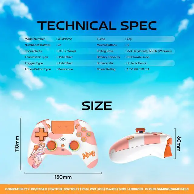 Dual Connectivity & Hall Effect Precision: Connect via Bluetooth 5.3 or wired USB-C. Equipped with durable, high-accuracy Hall Effect triggers and thumbsticks for jitter-free, precise control ideal for racing and FPS games.
