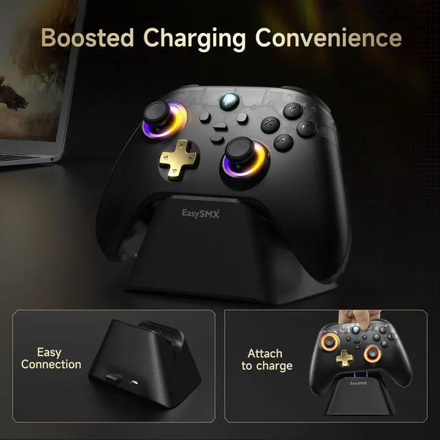 Upgrade your gaming setup with the D05 PC Game Controller. Featuring dual Hall effect joysticks, RGB lighting, wireless connectivity, charging dock, and dual vibration, it's perfect for PC, Switch, Android, and PS3 gamers.