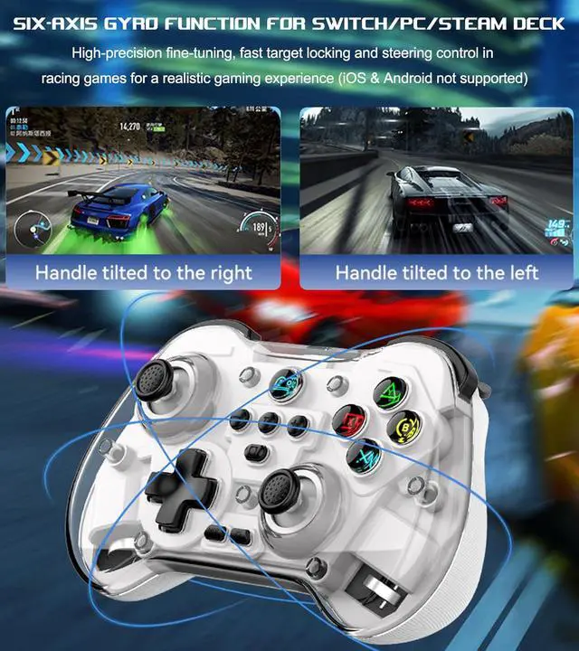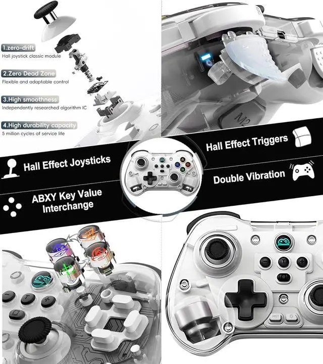 Dominate your games with the Z01X Wireless Bluetooth Controller. Featuring Hall joystick and trigger, 4 macro back buttons, 6-axis gyro, and 600mAh battery, it's the ultimate controller for Switch, PC, Android, and iOS.