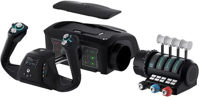 Universal, all-in-one design including throttle quadrant, trim wheel & yoke.Compatible with supported titles on Xbox & PCWhats in the Box : VelocityOne Flight Universal Control System (Yoke Handle, base & Throttle Quadrant), Detachable Throttle Tops (8), SIP Inserts (2), Desk Clamp & Clamp Tool, Cockpit fixing screws (8), 1m USB-C to USB-C cable, 2m USB-A to USB-C Cable, Quick Flight Guide, Quadrant Button Decal Sheet, SIP Decal Sheet (2)