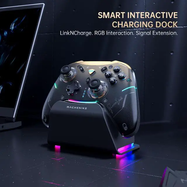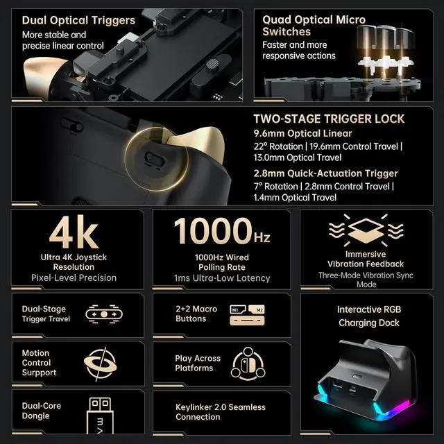 Machenike G5Pro V2 1000HZ Wireless Gaming Controller for NS/PC/iOS/Android with Charging Dock,PC Controller With Hot-Swappable Joystick,Optical Triggers,Optical Micro Switches,RGB Backlight, Black Gol