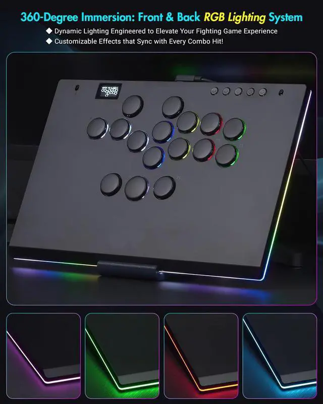 16-Key Professional Layout and Custom RGB Lighting, with LOCK: Dominate, equipped with 4 ultra-responsive metal switches and 12 anti-slip action buttons. Personalize your battlefield with colorful RGB lights (locked during the game!) for an immersive gaming experience.