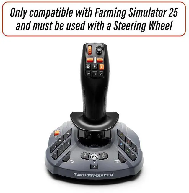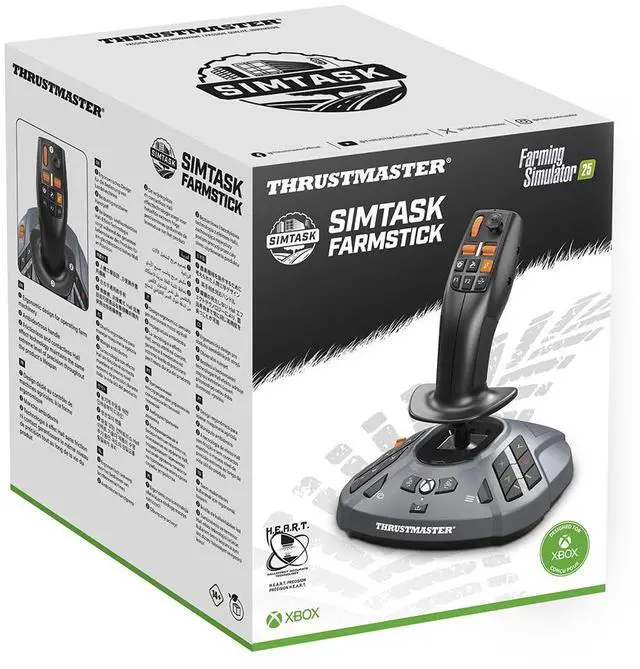 Ergonomic Design, Inspired By Real Farming MachineryThe ergonomic, ambidextrous design lets you easily access the main features with comfortable handling - even during long sessions. SimTask FarmStick was directly inspired by the interiors of high-end modern tractors and farming equipment, with realistic dimensions. Plug & Play in Farming Simulator 22SimTask FarmStick is compatible with Xbox Series X|S and PC (Windows 11/10), and Plug & Play in Farming Simulator 22 (game not included). The controls are automatically mapped to each vehicle. All buttons can be programmed for the needs of each game (list of compatible games available on the Thrustmaster support website).