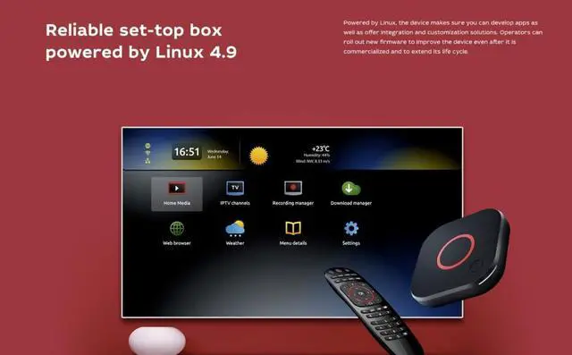The device has a Amlogic S905X2 Chipset, 2T2R ac Wi-Fi module. It offers up to 100 Mbps in 2.4 GHz mode and up to 550 Mbps in 5 GHz mode. The device also has a built-in 100 Mbps Ethernet port.