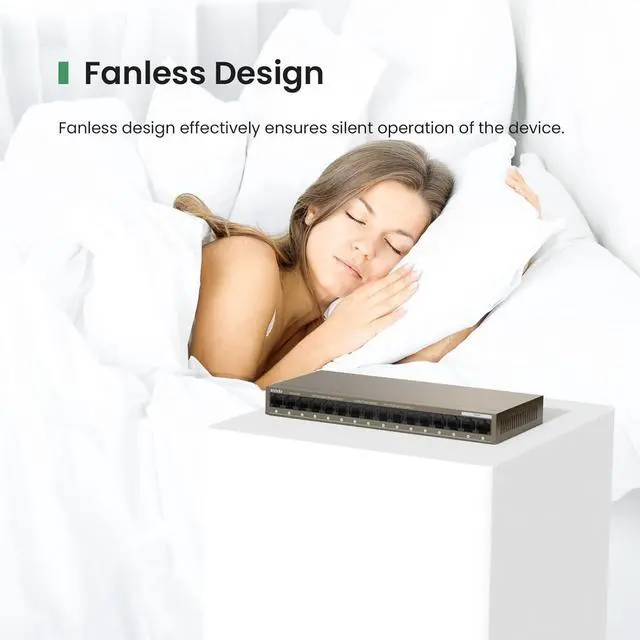 RELIABLE AND QUIETNetwork switch 16 port with IEEE 802.3X flow control provides reliable data transfer; fanless and metal design ensures quiet operation and better heat dissipation