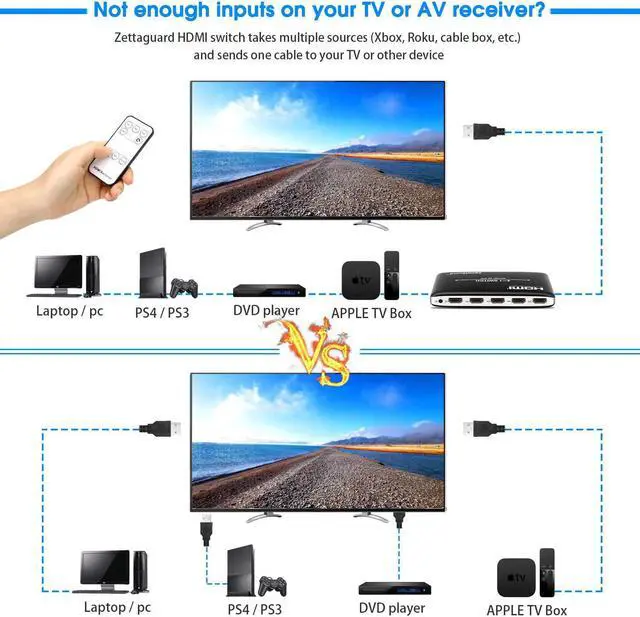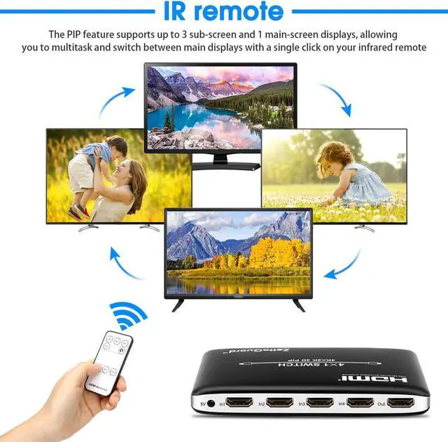 Connects up to 4 HDMI source components to a single HDMI input, Switches between HDMI ports with included remote for impressive picture quality