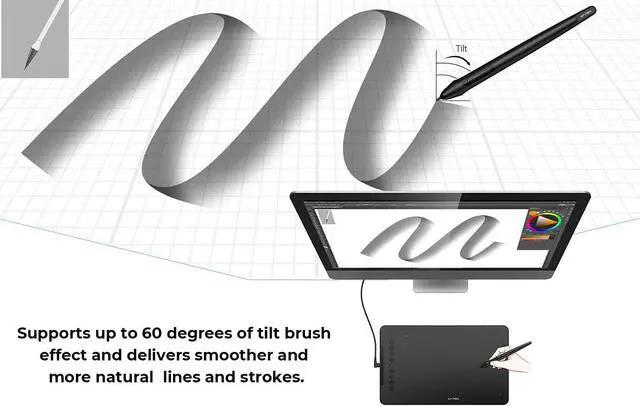 Drawing Pad-Tilt SupportedDeco 01 V2 supports up to 60 degrees of tilt brush effect and delivers smoother and more natural lines and strokes, while also giving you the ability to add shading to your creation.
