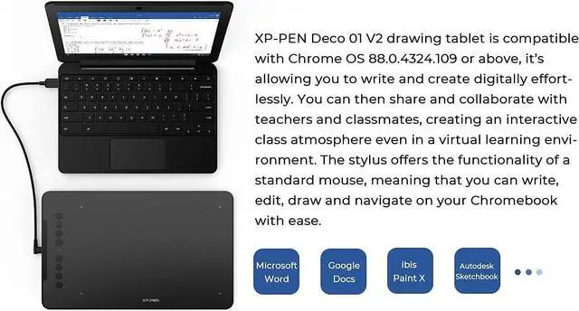 Graphics Tablet-Android SupportedThe Deco 01 V2 can be used with Windows 10/8/7, MAC OS X 10.10 and above and Android 6.0 and above and Chrome OS 88.0. 4324.109 or above.